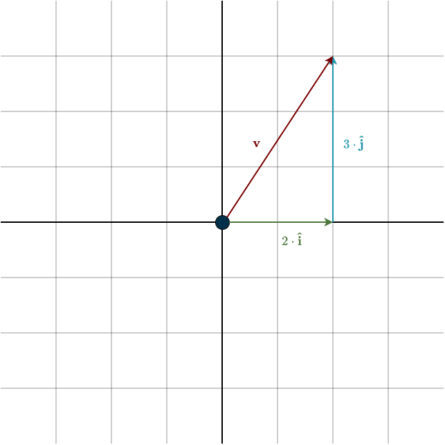 \(\mathbf{v} = 2 \cdot \mathbf{\hat{i}} + 3 \cdot \mathbf{\hat{j}}\)