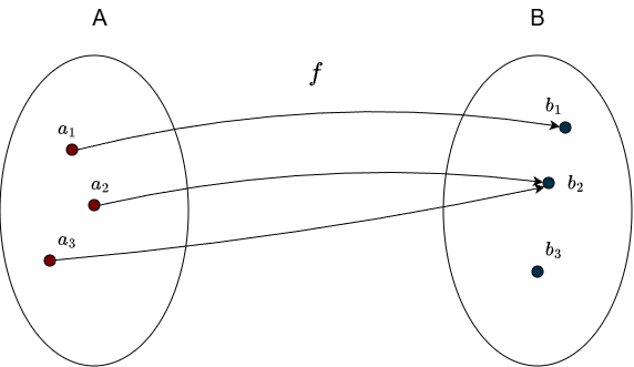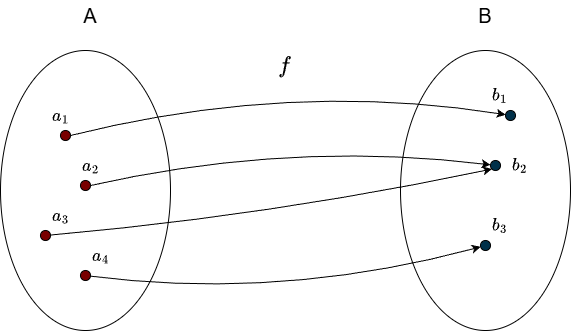 In a surjective function, nothing in the codomain is “left out.” Every element of \(B\) must have at least one incoming arrow.